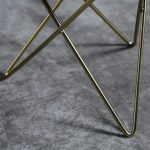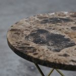 Mesa de centro moderna. Cubierta de mármol café y estructura en fierro color dorado. Diseño y combinación que quedará perfecta en cualquier espacio