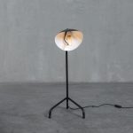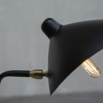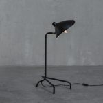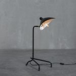 Reedición de un modelo icónico de 1954, la lámpara de mesa Tripode Serge Mouille es un diseño atemporal realizado en Francia por Éditions Serge Mouille. Su cuerpo de acero negro tiene 3 pies y un reflector de aluminio con un interior blanco brillante, ajustable mediante una rótula de latón.