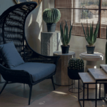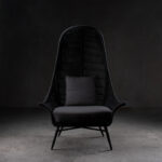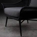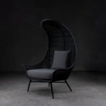 Sitial de poli fibra con patas de aluminio y tela outdoor.