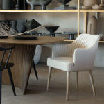 Sitial 100% lino en color Beige con patas y estructura de roble. Diseño cómodo y perfecto para cualquier espacio.
