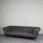 Sofá chester de cuero de 4 cuerpos color grafito.