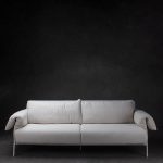 Sofá que rompe con los diseños convencionales y ofrece una experiencia sorprendente. Sus finas patas de fierro galvanizado le dan una apariencia volátil, la cual se acentúa con la particularidad de sus brazos que sumergen al ser humano en una vivencia estética única. La modernidad cálida de WOLF en su máximo esplendor.