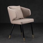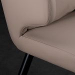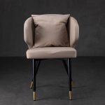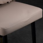 Silla de patas de fierro color negro con pequeña terminación color bronce. El asiento y respaldo son de cuero pu color beige, para poder ser limpiadas con facilidad.