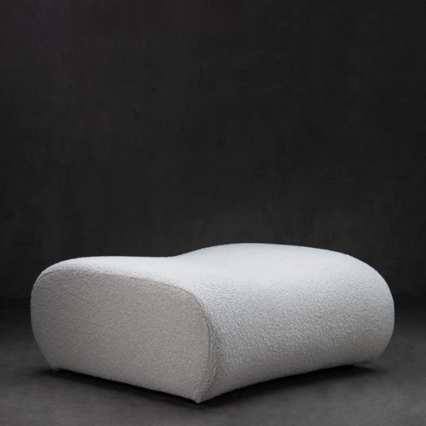 Pouf modular de tela bouclé color crudo con relleno de espuma de alta densidad, estructura de madera y patas de plástico de diámetro 60 mm. Se pueden juntar los módulos entre sí para armar un sofá del tamaño que desees.