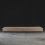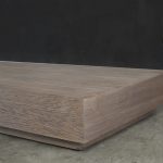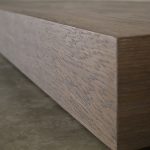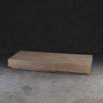 Mesa de centro en estructura de roble rojo enchapado en roble en terminación almendra.
