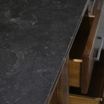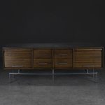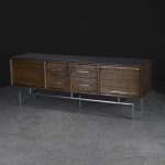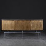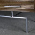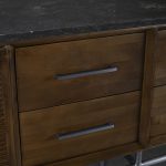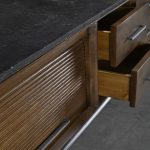 Arrimo de madera de roble rojo enchapado en nogal con cubierta de piedra azul y patas fierro.