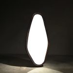 Espejo con borde de fierro macizo en terminación cobalto mate.