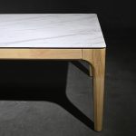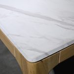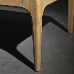 Diseño moderno y materiales duraderos. Su cubierta en aglomerado forrado en resina ofrece una apariencia elegante, mientras que las patas de roble macizo aportan calidez, estabilidad y un toque natural. Ideal para espacios contemporáneos que buscan estilo y funcionalidad.