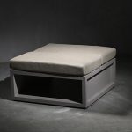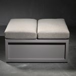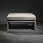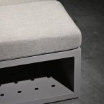 Ottoman o mesa de centro modular de aluminio en terminación taupe. Esta pieza tiene la opción de ser mesa de centro, lateral o ottoman con cojines, estos se pueden guardar en la estructura para las temporadas en las que no está en uso.