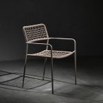 Sitial apilable de fierro galvanizado en terminación taupé y cuerda náutica taupé.