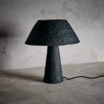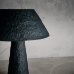 Esta lámpara de mesa combina la estética artesanal con un diseño contemporáneo. Fabricada en papel maché con acabado en tono negro, lo que le da una textura orgánica y un acabado ligeramente irregular.