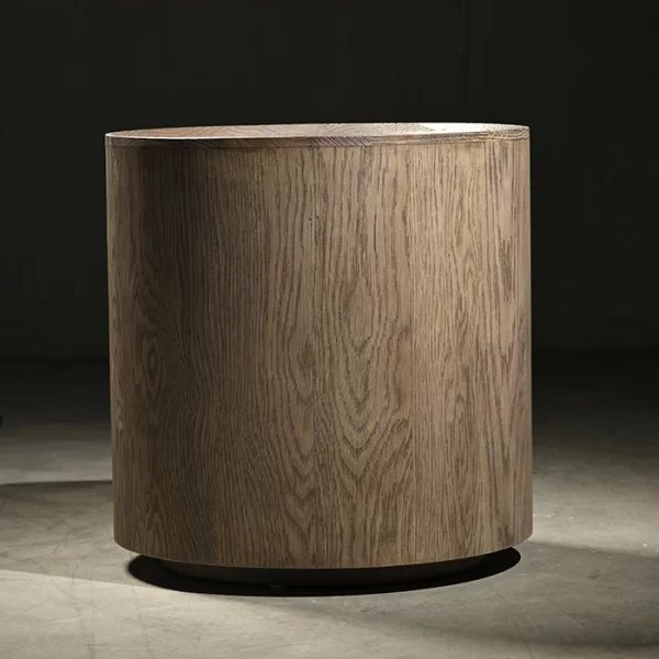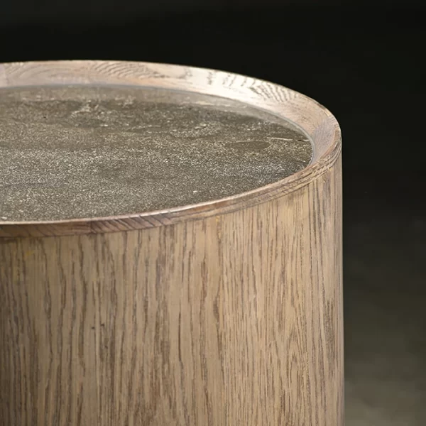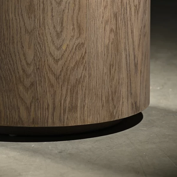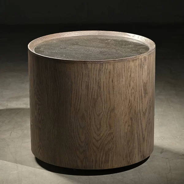 Mesa de centro de roble rojo enchapado en roble en terminación nogal y cubierta de piedra azul.