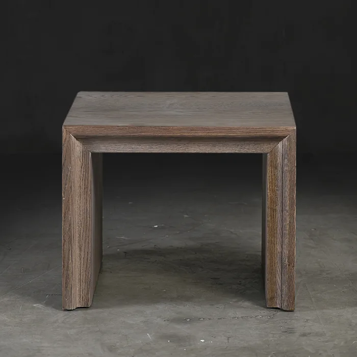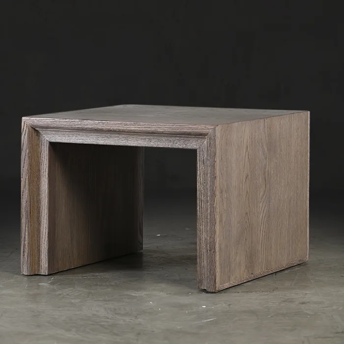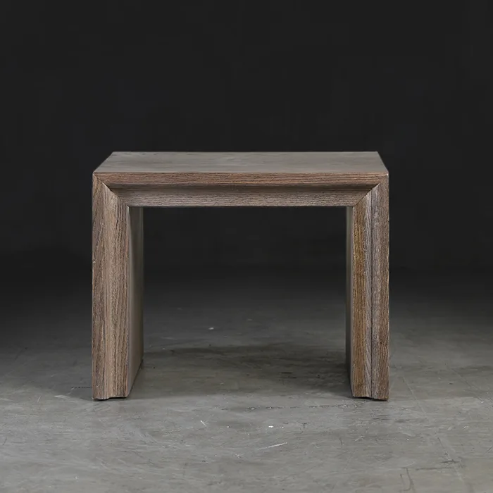 Mesa de apoyo estructurada en roble rojo y enchapada en roble en terminación avellana.