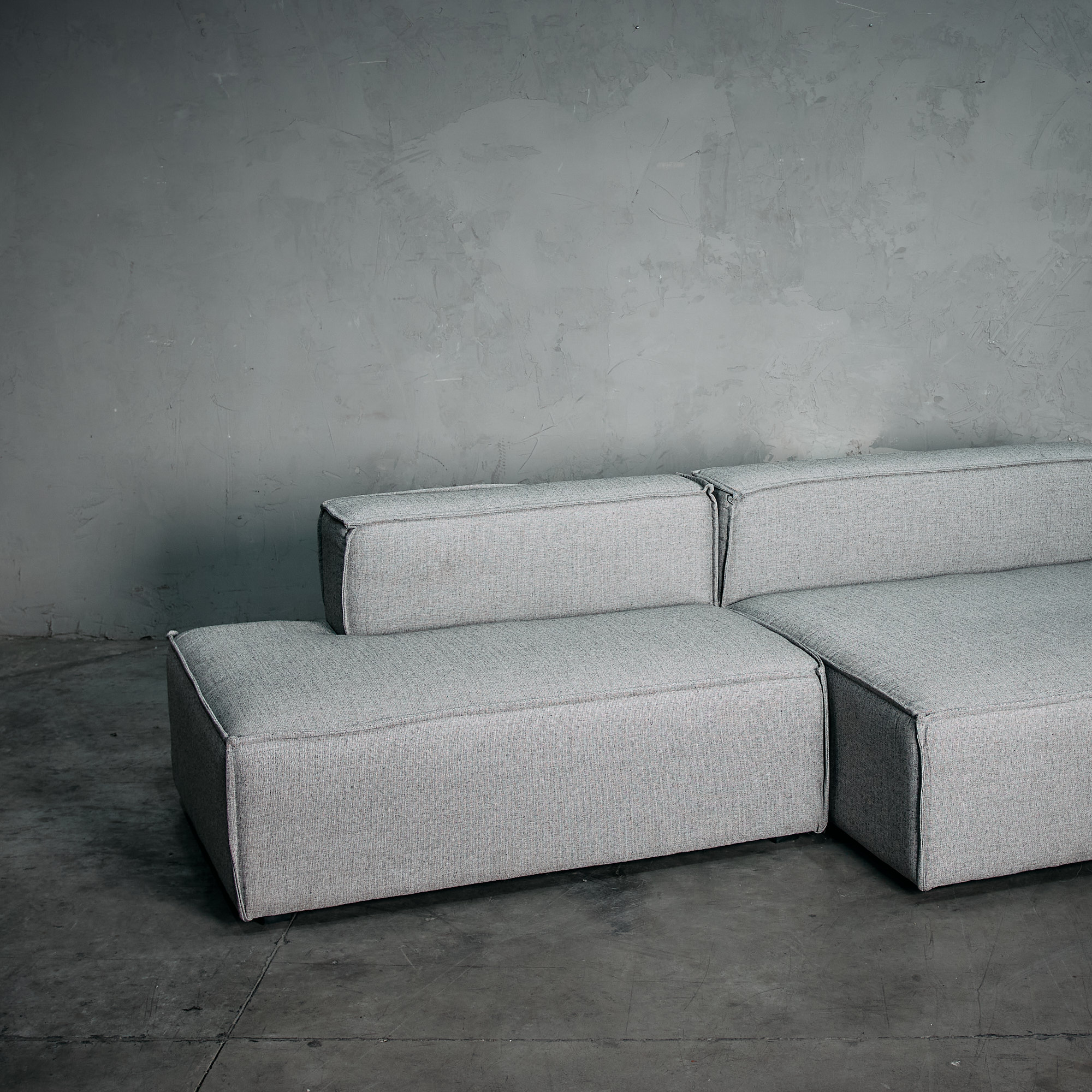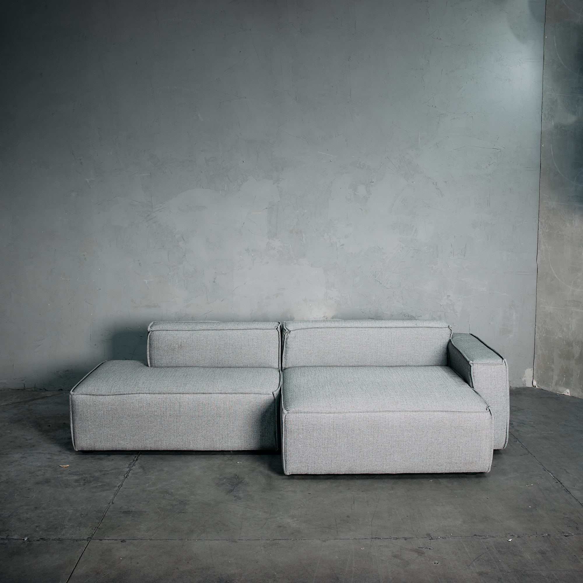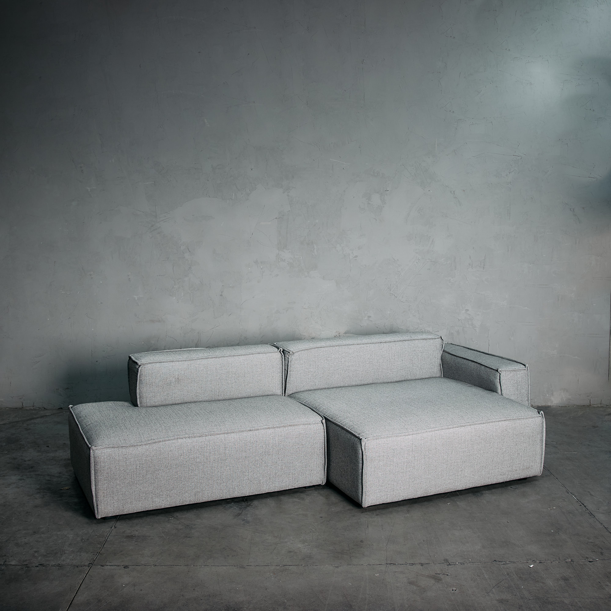 Seccional para exterior tapizado en tela impermeable Aqua Clean gris, diseñado para resistir el uso diario y brindar comodidad en cada momento.