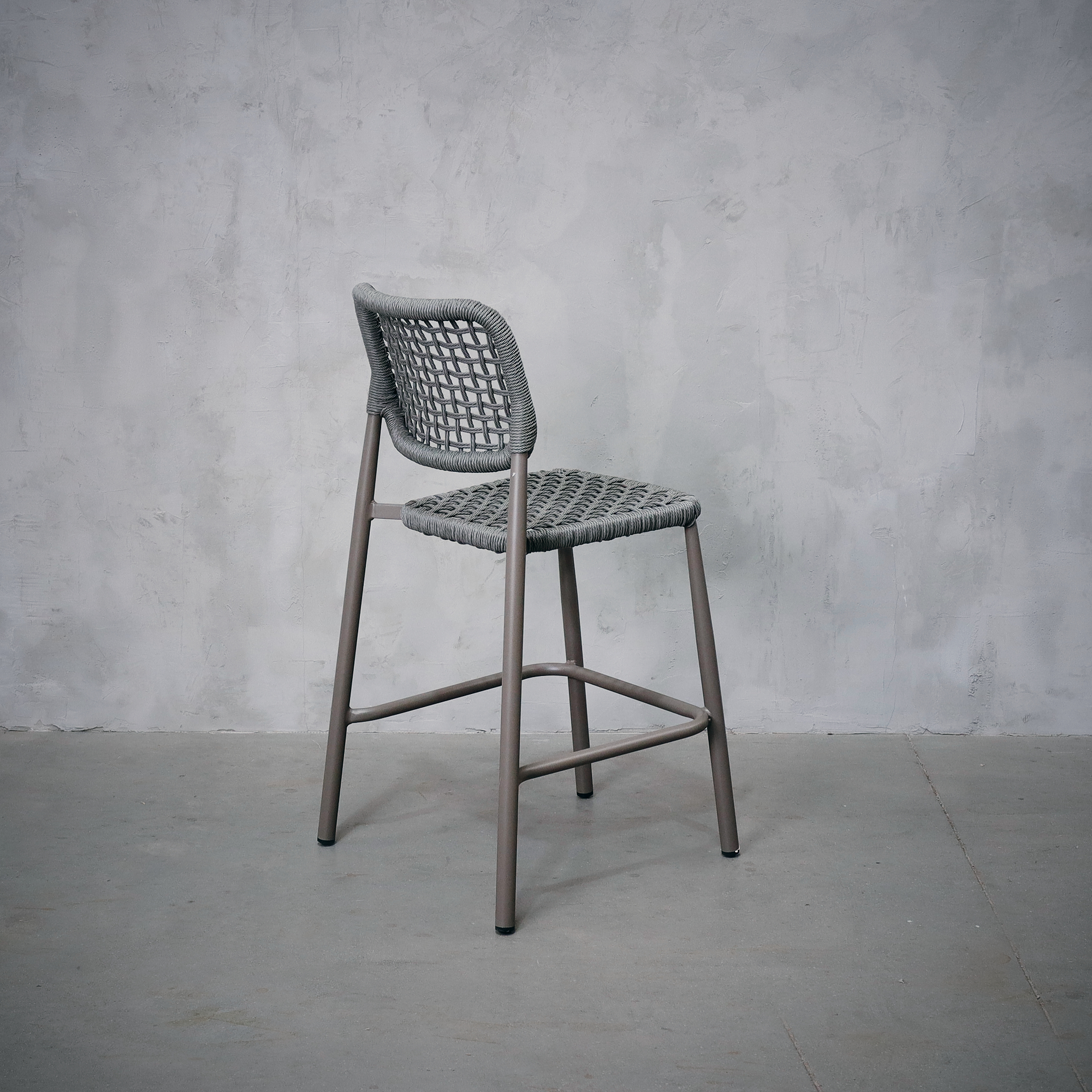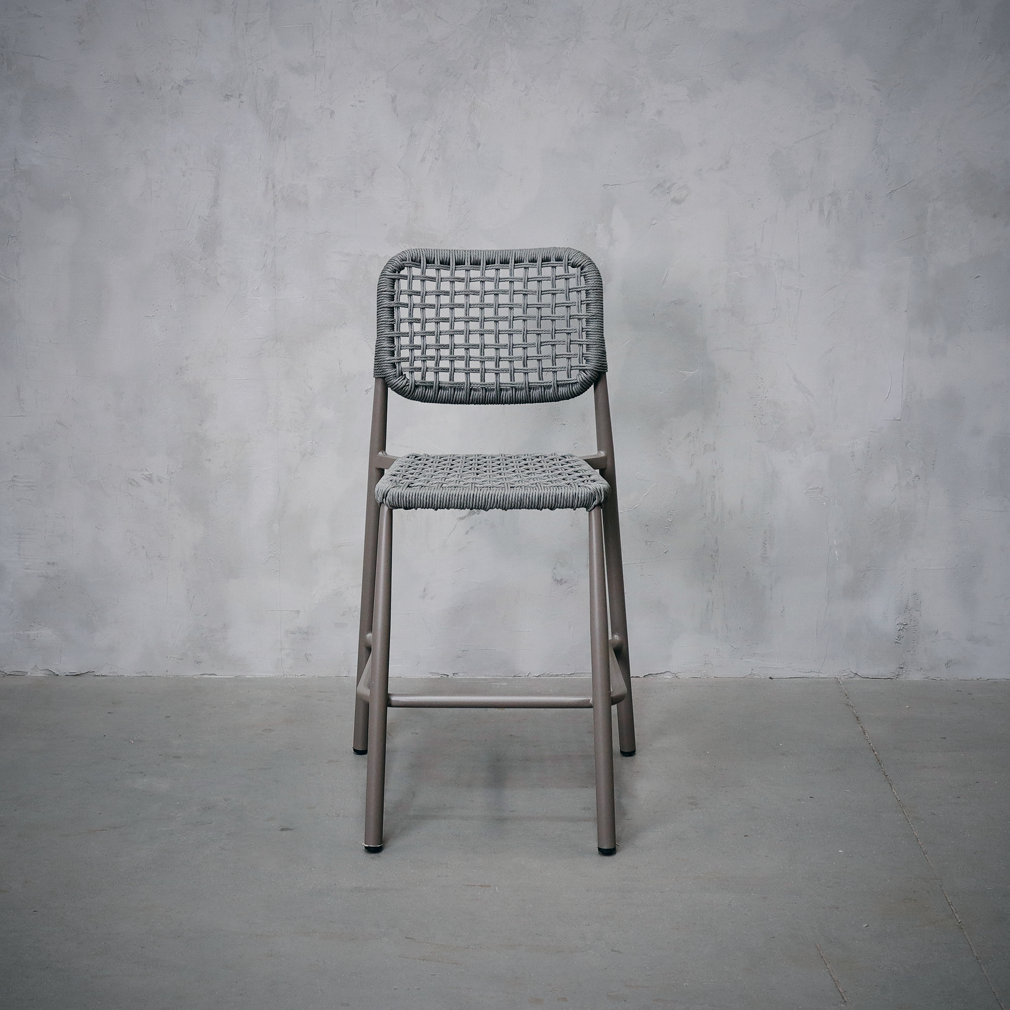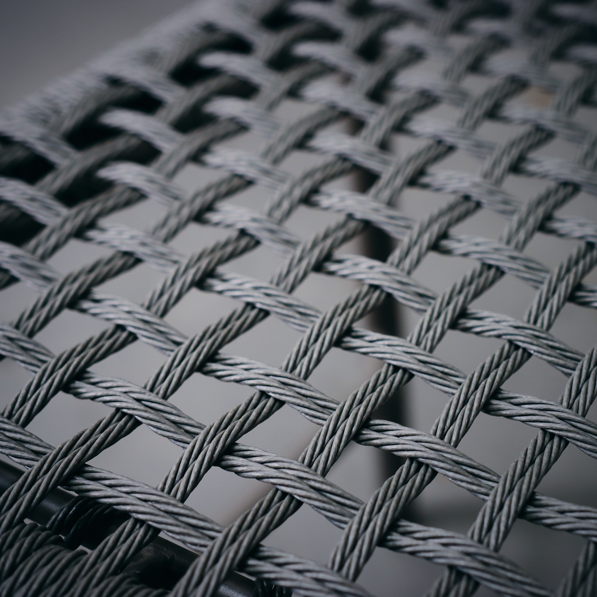 Piso elaborado con una estructura de aluminio y cuerda náutica en color taupe. Este material destaca por ser muy resistente y ligero. Entre sus principales ventajas se encuentra su excelente resistencia a la humedad, lo que lo hace perfecto para mobiliario tanto de interior como exterior.