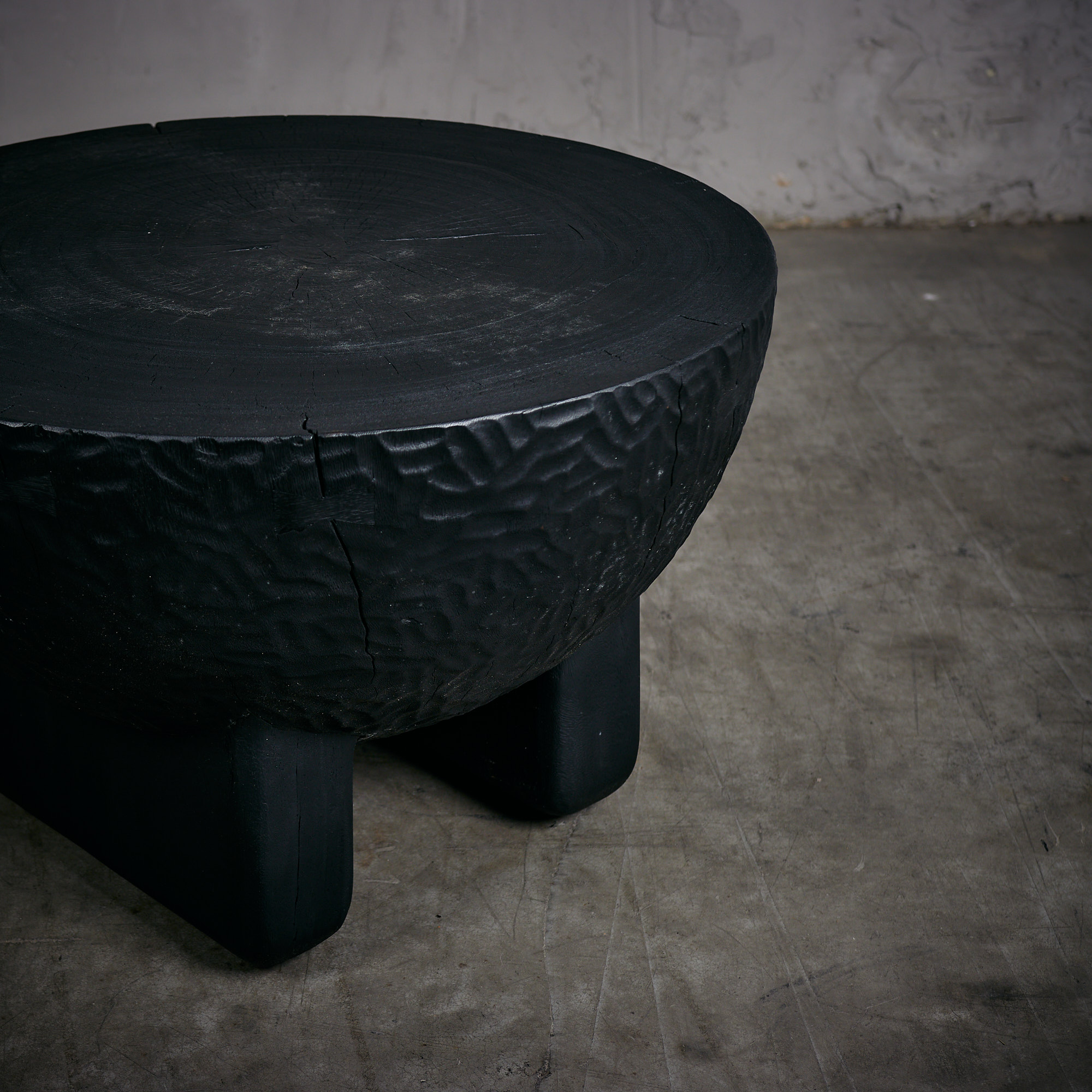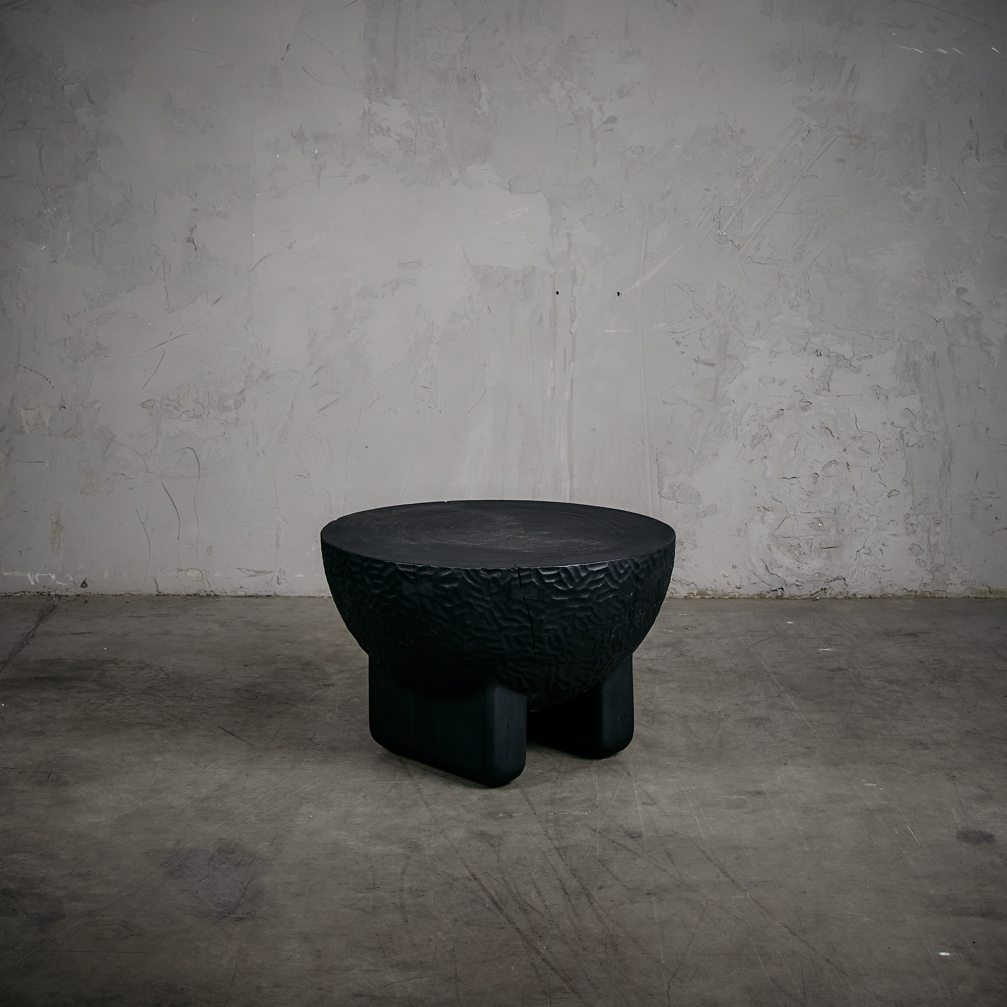 Mesa de centro de madera de suar en terminación quemado.