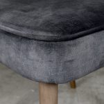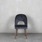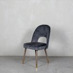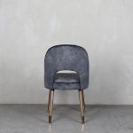 Silla de comedor de estructura de madera en tapiz aterciopelado con patas color nogal.
